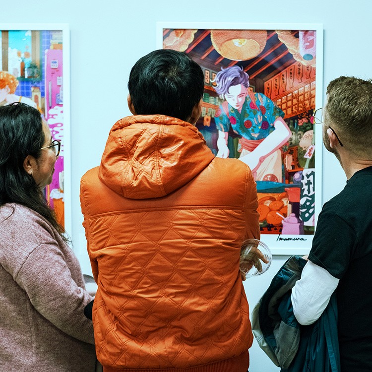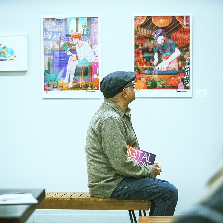 多くの人が来場したカナダ・バンクーバーでの個展風景(2023年)