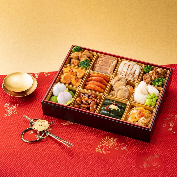 広東風の優しい味わいのおつまみ中華おせち。譚シェフこだわりの4度焼きした特製チャーシューを始め、エビチリ、大西洋鮭の唐揚げリンゴ酢風味など、見た目と味わいで赤坂璃宮の世界観をお楽しみいただけます。