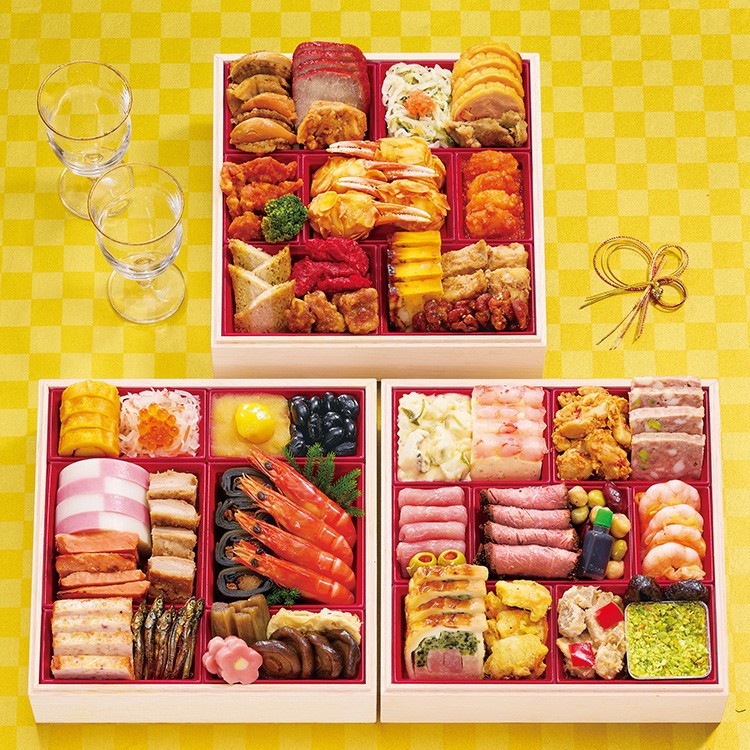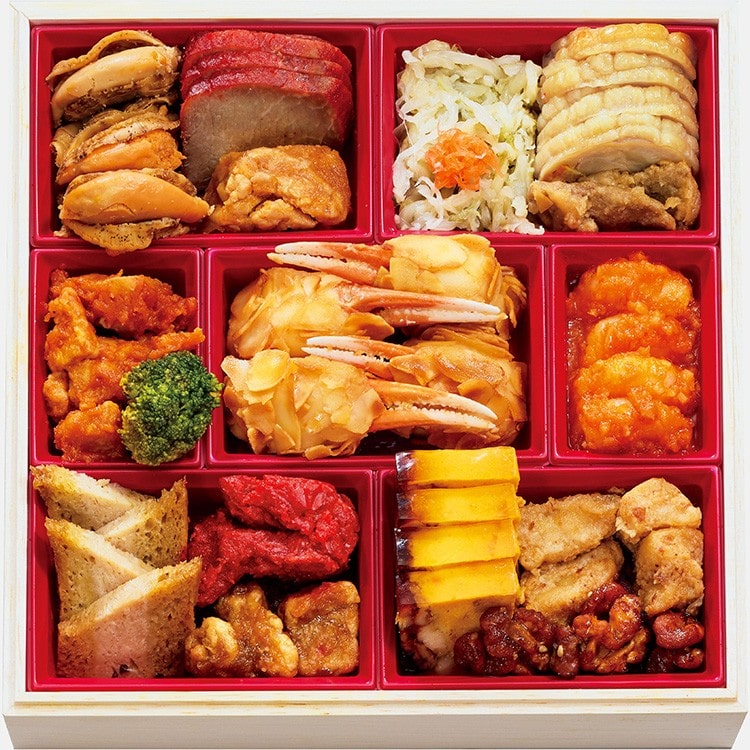 第十代総料理長、伊藤博之の監修による歴史と伝統の味が盛り込まれた和洋中おせち。伝統的なおせちに加えて海と山の食材を使った多彩なメニューを味わえるのが魅力。和洋中それぞれの素材と味を吟味し、新春を迎えるにふさわしく上品に仕上げました。
