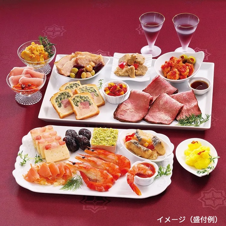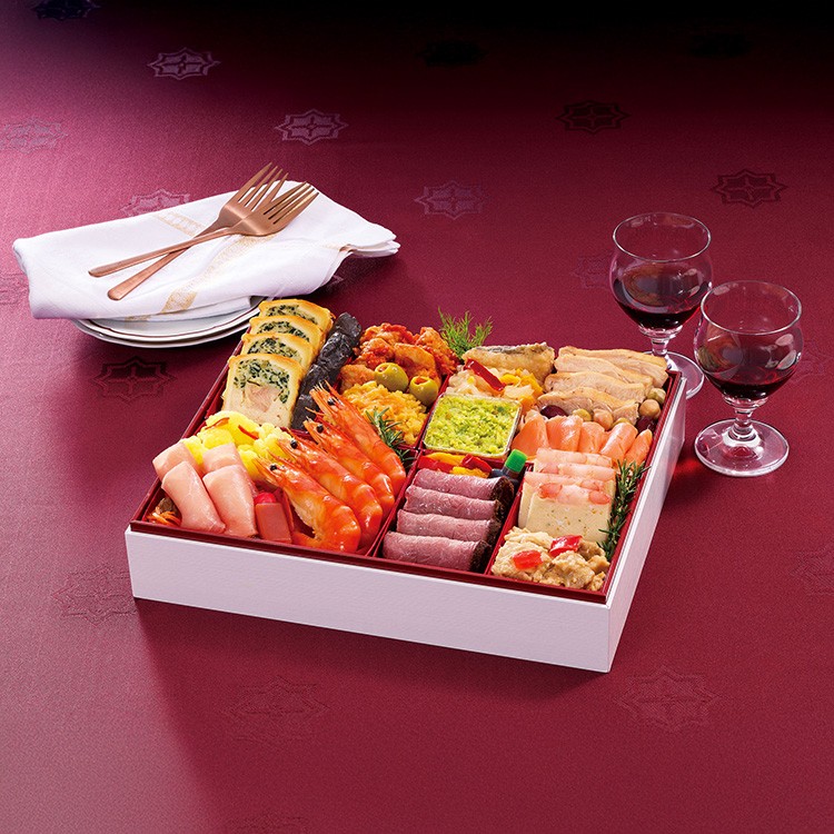 第十代総料理長、伊藤博之の監修による歴史と伝統の味が盛り込まれた洋風オードヴル。ローストビーフ、テリーヌ、マリネなどが祝いの席を華やかに彩り年末年始のお集まりに重宝する商品です。工夫を凝らしたお料理が楽しめます。