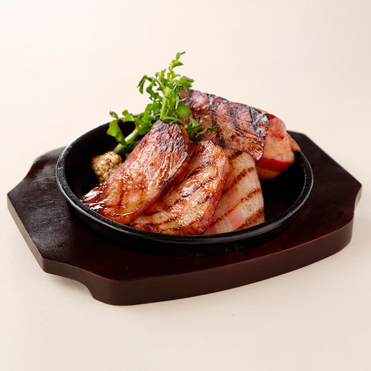 あっさりとし、うまみのある脂のスペイン産イベリコ豚を使用し脂を生かし肉の味を引き立てる下味付けをていねいに行い桜のチップでしっかりと香ばしくスモークしました。料理に使うと脂身のおいしい引き立つ香り豊かなベーコンです。