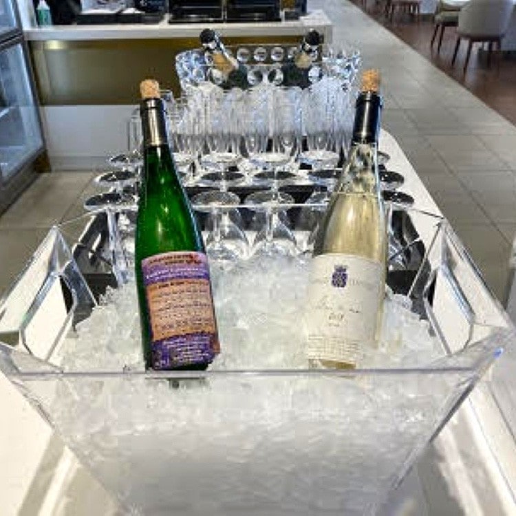 成田空港のJALファーストクラスラウンジで提供された「SAKEワイン」。