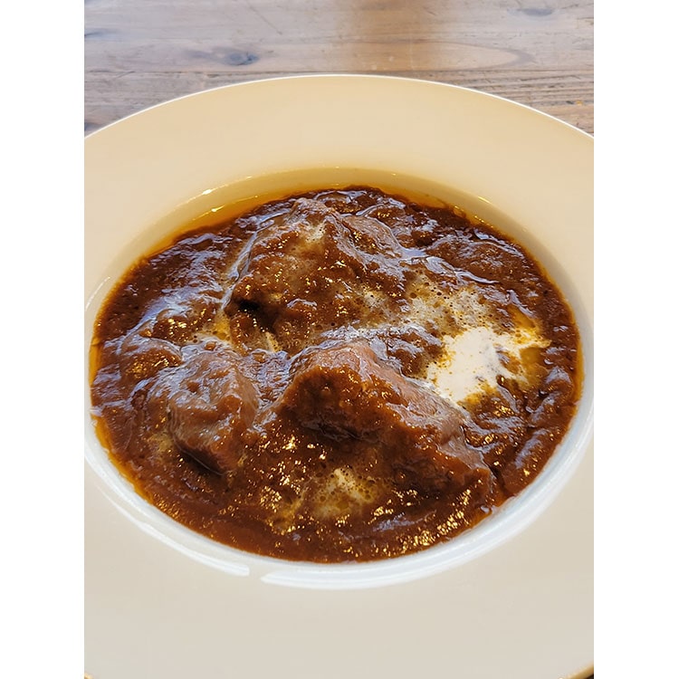 ゆすはら牛のお肉がしっかり感じられる大き目のお肉は食べ応えあり。うま味がしっかりとけこんだビーフシチューをぜひお楽しみください。