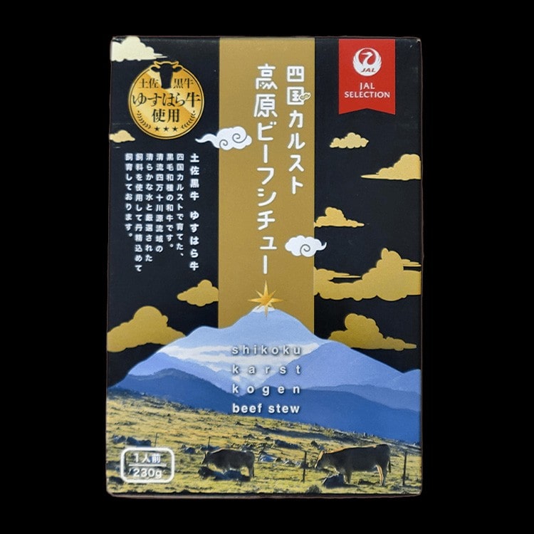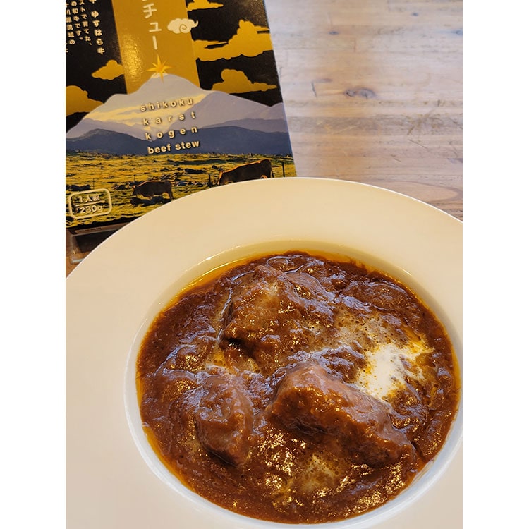 四国カルスト地域と雲の上の町、高知県梼原町の活性化を目的として開発された商品。四国カルストの大自然の中育てられた黒毛和種の和牛「ゆすはら牛」を贅沢に使用。大きめのお肉がしっかり入ったうま味が溶け込むビーフシチューをぜひご堪能ください。