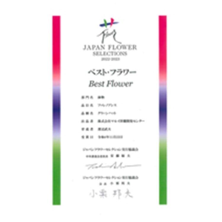 ジャパンフラワーセレクション『ベストフラワー賞』受賞