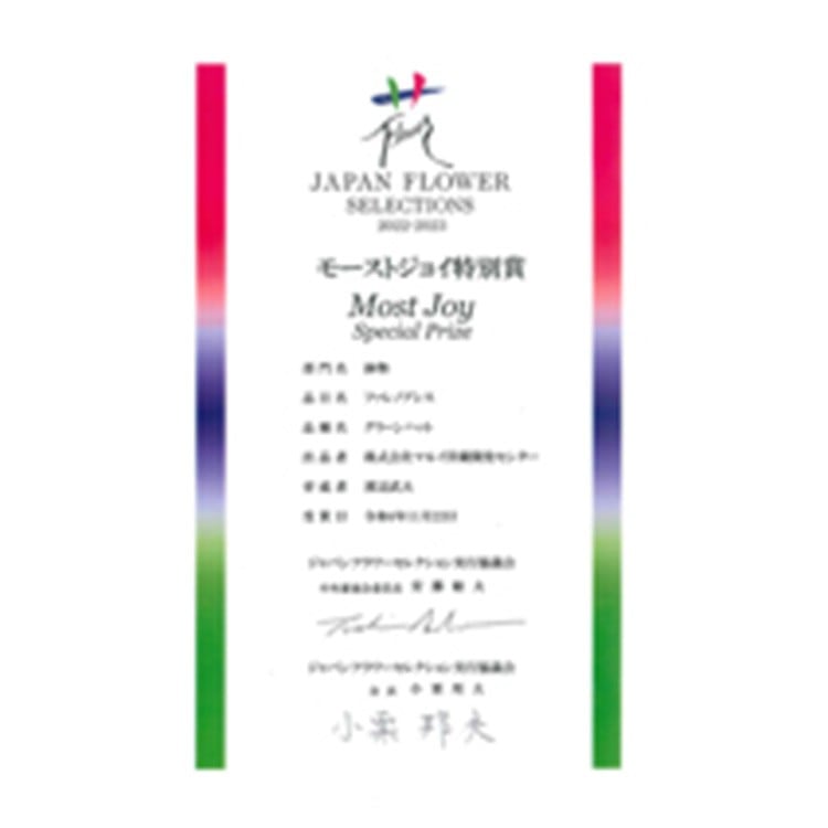 ジャパンフラワーセレクション『モーストジョイ特別賞』受賞
