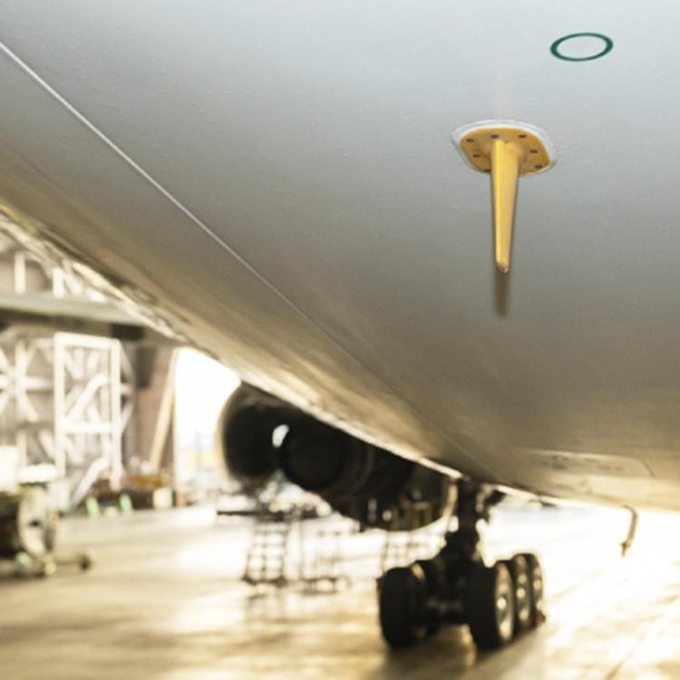 万が一離着陸時に胴体が地面に接触してしまった場合にパイロットに知らせるための部品で、胴体の下、後方についています。離着陸時、パイロットが機体を引き起こした際に、機体後部が地面に接触するとテイルストライクは破壊されます。テイルストライクの中には電線が通っており、この電線が切れることでテイルストライクが破壊されたことを感知しています。
