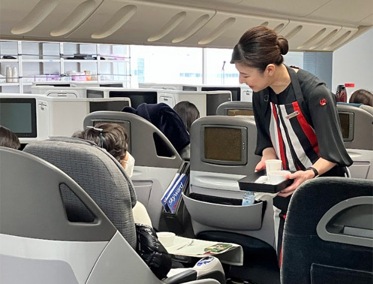 約15分 受付 約20分 オリエンテーション(スカーフまたはネクタイを着用) 約90分 訓練施設にてドリンクカートでのサービス体験や機内アナウンス体験・国際線ファーストクラス見学など 約50分 国際線ビジネスクラス座席でのビジネスクラス機内食体験(購入時に洋食か和食かお選びいただけます) 約20分 クロージング ※上記スケジュールは変更となる場合があります。