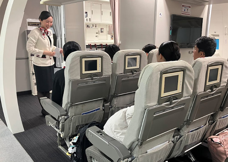 普段はなかなか入れない羽田空港のJAL訓練施設で、「客室乗務員はどのような仕事か」を体験型プログラムを通してお届けいたします。