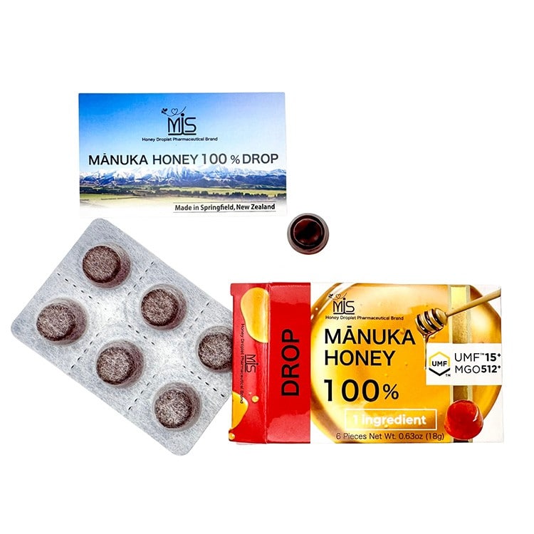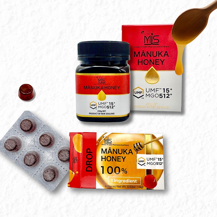 ●MISマヌカハニーUMF™15+:ニュージーランド製 ●内容:250g ●常温2年 /●MISマヌカハニーUMF™15+ロゼンジ:日本製 ●内容:23g(6粒) ●常温1年