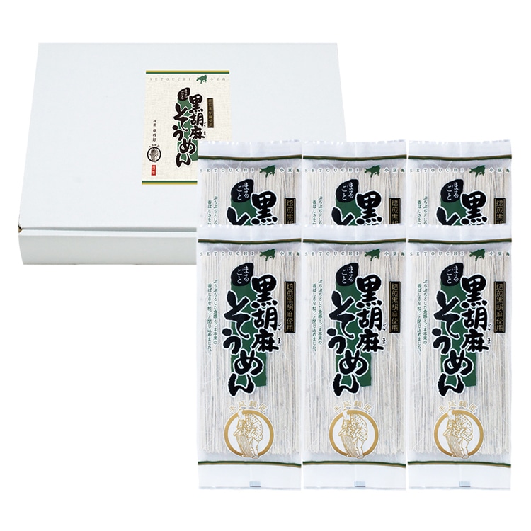 ビタミン、ミネラル、カルシウム等の栄養素を豊富に含んだ黒ごまを、粒ごと練りこんだ香ばしい風味のそうめんです。手延べならではのツルリとした舌ざわりに、プチプチとした食感がアクセント。