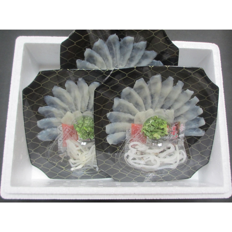 〈日本製〉●内容:とらふぐ刺身 25g×3個 とらふぐ皮 10g×3個 ぽん酢 10g×3個 もみじおろし 2g×3個 ねぎ  2g×3個 ●冷凍26日