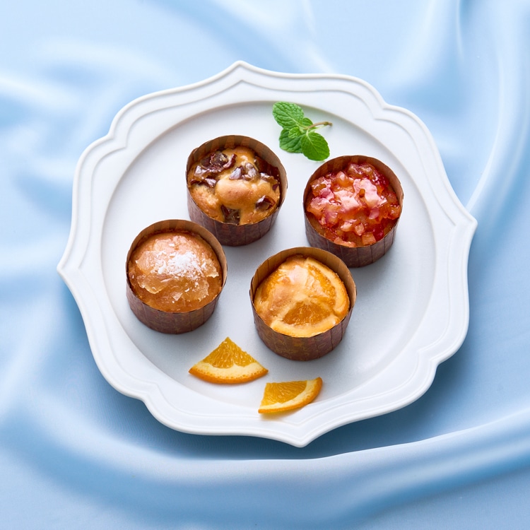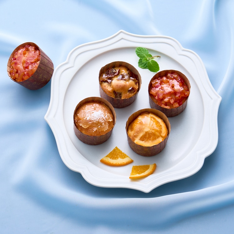 艶っと光るシロップ漬けの果実や、セミドライの果実がジュエリーのようなカップケーキです。空気をたっぷり含ませて焼きあげた、果実入りのなめらかな生地に煌めく果実たちをトッピングして、果実を味わうカップケーキに仕上げました。商品情報