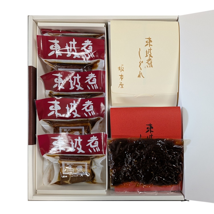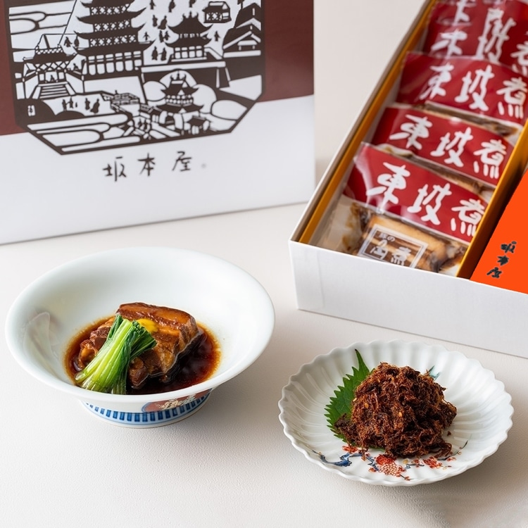 〈日本製〉●内容:東坡煮(豚の角煮) 65g×5個、東坡煮しぐれ(佃煮) 60g×2個 ●常温60日 ●湯煎