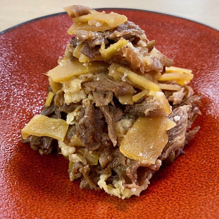 京壬生菜と柚子のちぎり天、椎茸旨煮、菜の花おひたし、にしん親子甘酢漬、ラム風味あんず、牛肉と筍のしぐれ煮、梅麩シロップ漬、海老のぷりぷりサラダ、金ごま一口いわし、たこ彩り甘酢和え、わらび餅[きな粉]