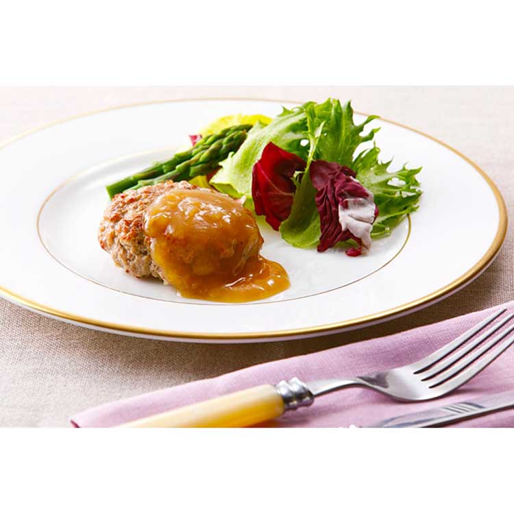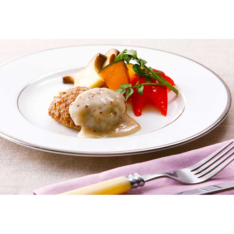 キメが細かくやわらかで上品な旨みの「やまと豚」のハンバーグです。「デミグラス」、「シャリアピン」、「ホワイトマスタード」の3種類のソースで煮込んだ味わいをご堪能ください。湯煎でお召し上がりください。