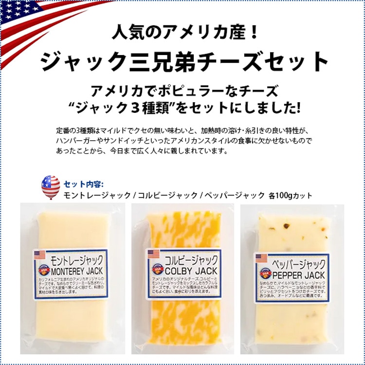 アメリカでポピュラーなチーズ、“ジャック”3種類を楽しめるセットです。