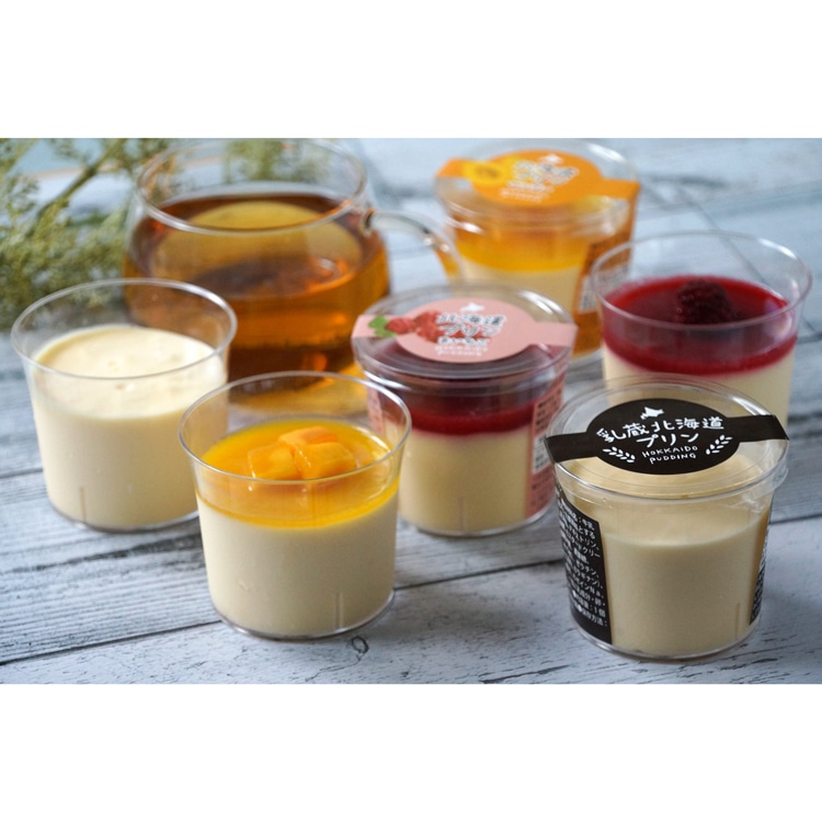 北海道産の牛乳を使用し、なめらかな食感に仕上げた北海道プリンと甘酸っぱい木苺ソース・濃厚なマンゴーソースをトッピングした木苺プリンとマンゴープリンの3種類のプリンセット。商品情報