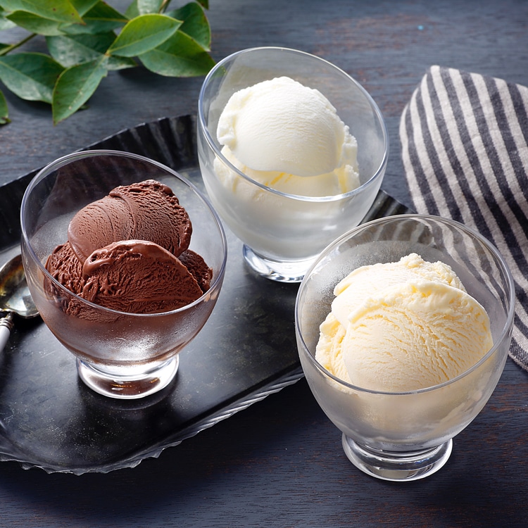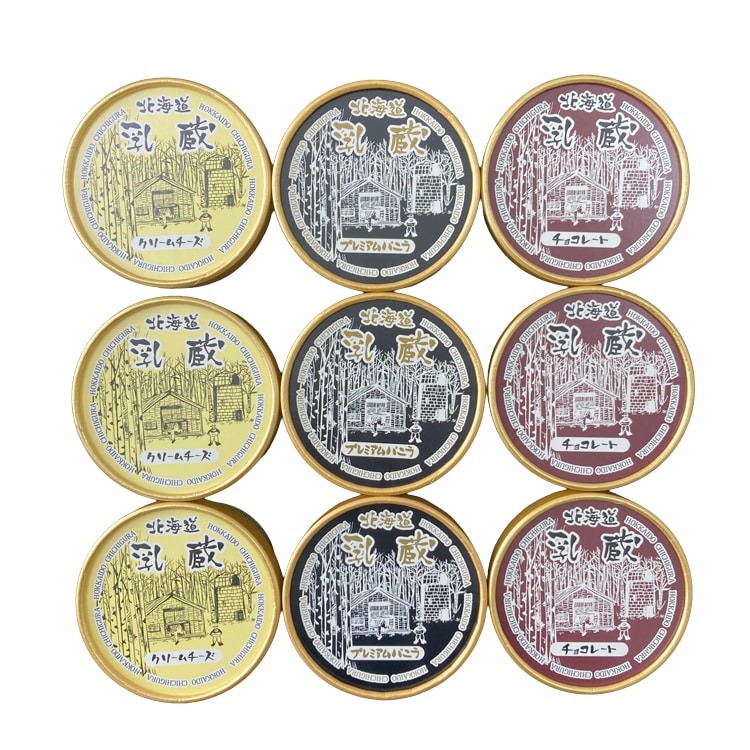 〈日本製、牛乳:北海道〉●内容:プレミアムバニラ 80ml×3個、クリームチーズ 80ml×3個、チョコレート 80ml×3個
