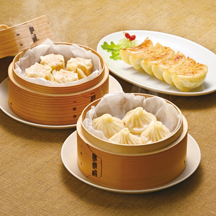 小籠包・焼売・餃子の3種点心セットです。
