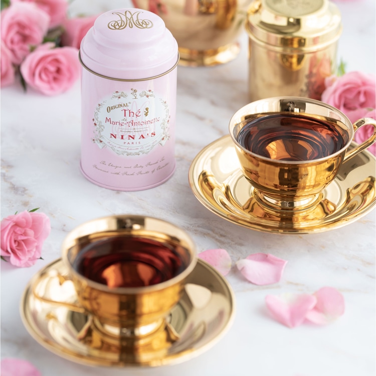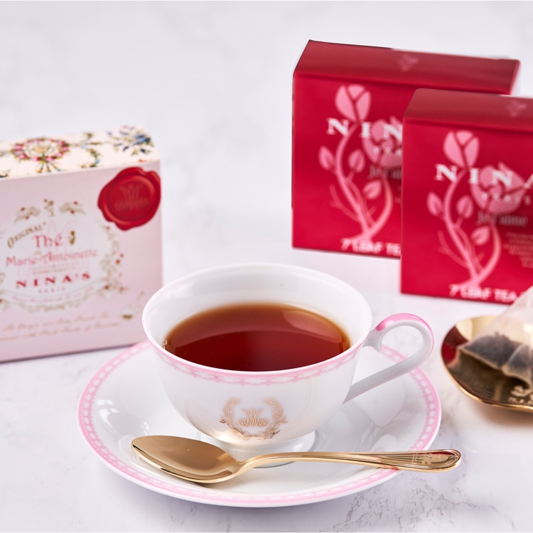 ●「マリー・アントワネットティー」ヴェルサイユ「王の菜園」で育まれた、希少なりんごとバラの花びらで香り付したフレーバーティーです。●「ニナスブレンド」セイロンティーにイタリアのブラッドオレンジ、ピーチ、ストロベリー、チェリーの香りをつけたニナスの代表的なフレーバーティーです。