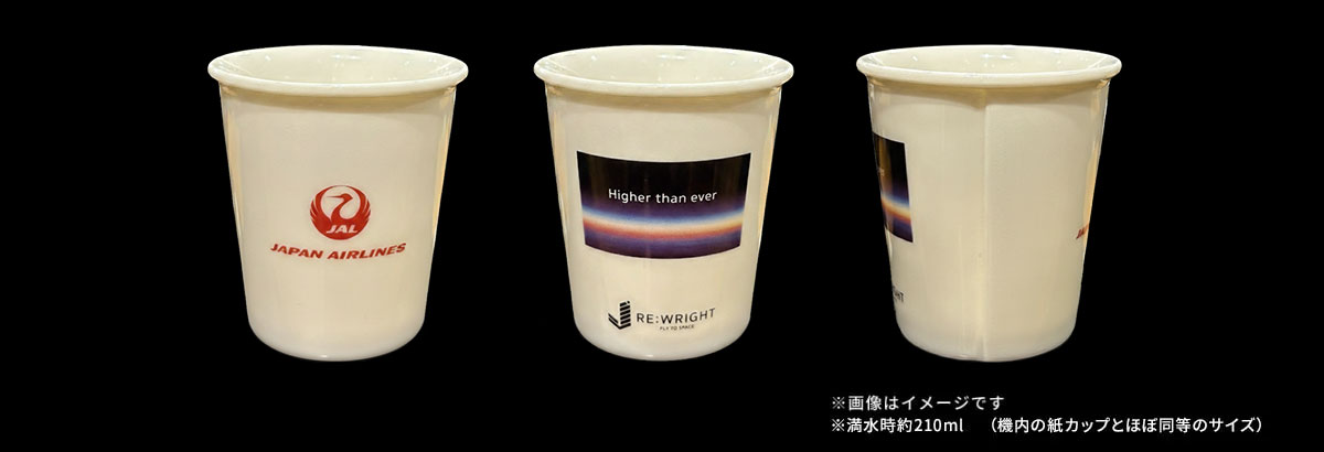 JAL機内で提供している紙カップを陶器で再現し、背面には宇宙グループのロゴを施した、ここでしか手に入らない宇宙xJALオリジナルグッズをご用意いたしました。