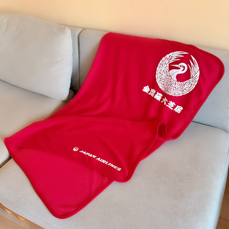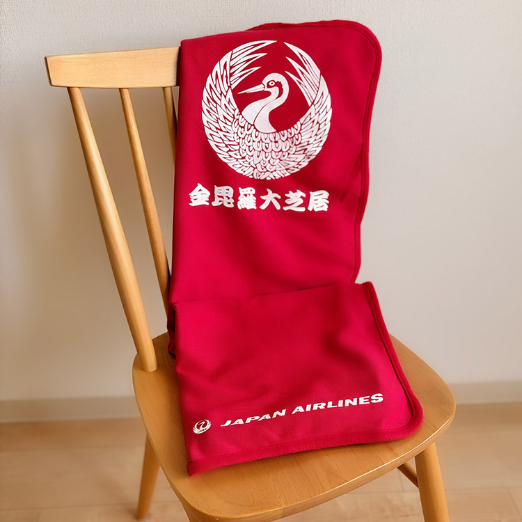 「四国こんぴら歌舞伎大芝居」をより快適に鑑賞していただきたいという想いから、JALが琴平町へ寄贈した来場者用ひざ掛けと同モデルを商品化しました。「琴平を訪れる皆さまに、「金丸座」の歴史や、香川の伝統文化をより身近に感じていただきたい」という想いから、本商品を企画いたしました。