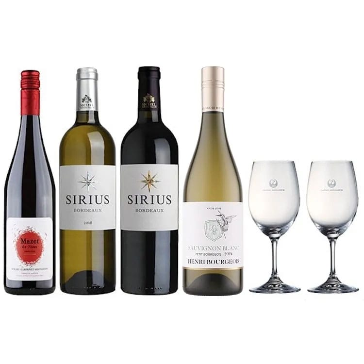 国際線のワイン体験をご自宅で再現し、特別なひとときをお楽しみいただけます。ギフトやお祝いの席にもぴったりの逸品セットです。