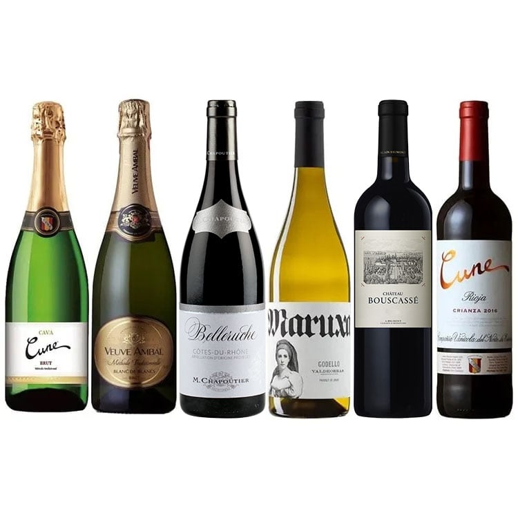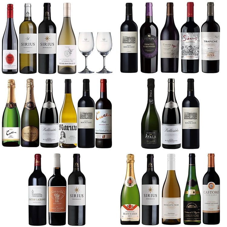 果実味豊かな赤ワインや爽やかな白ワインなど、バランスよく入ってご家庭のお食事に合わせて楽しんでいただけます。
