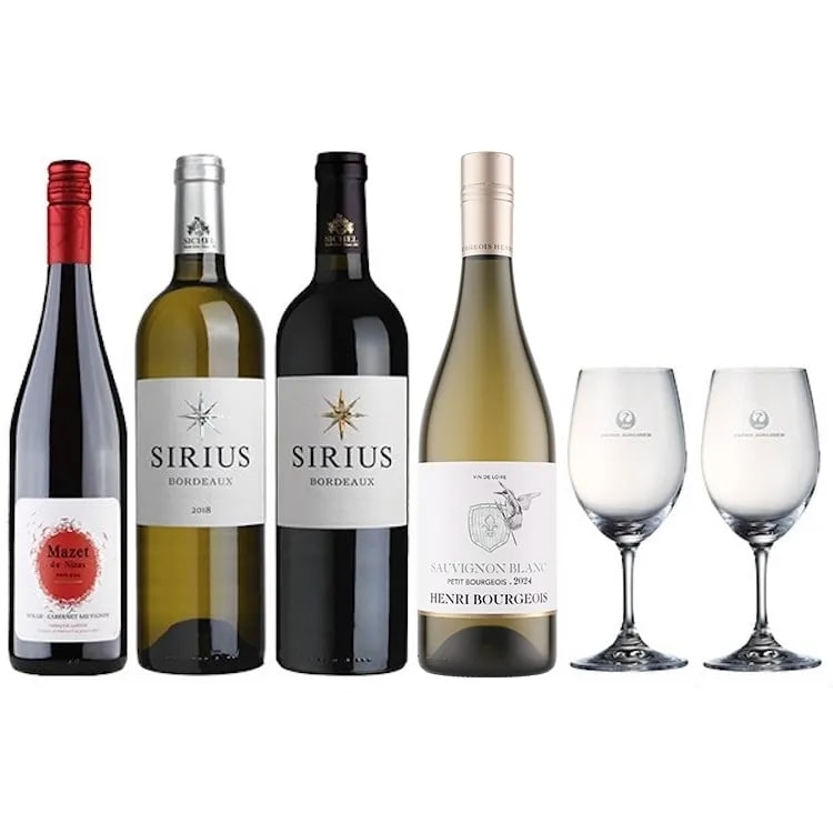 JALオリジナルグラスで楽しむ ビジネスクラス・ラウンジ採用ワイン 4本セット