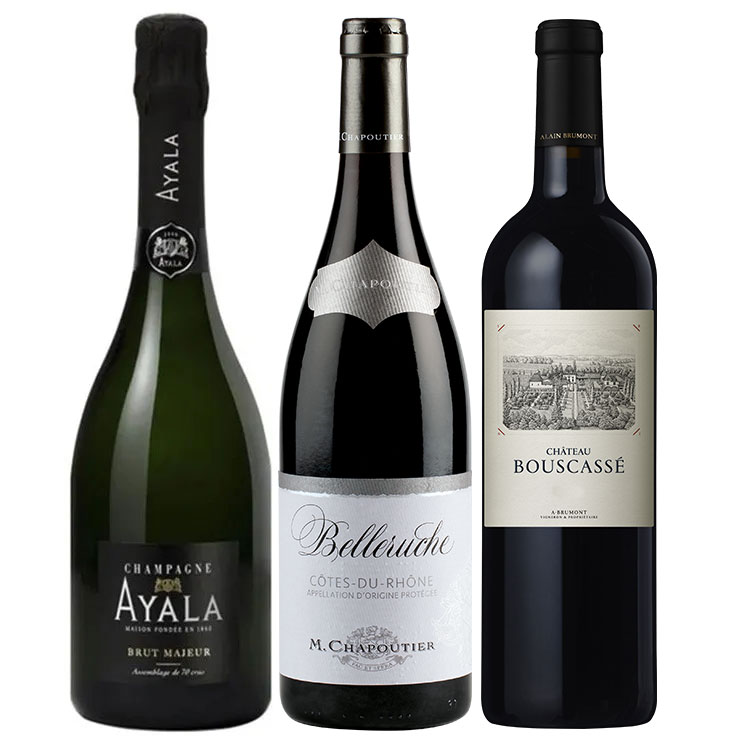 JAL国際線ビジネスクラス、国際線ファーストクラスラウンジ採用の銘柄入りフランスワイン3本セット