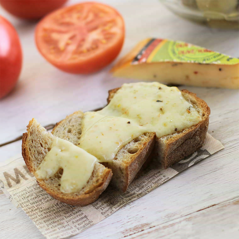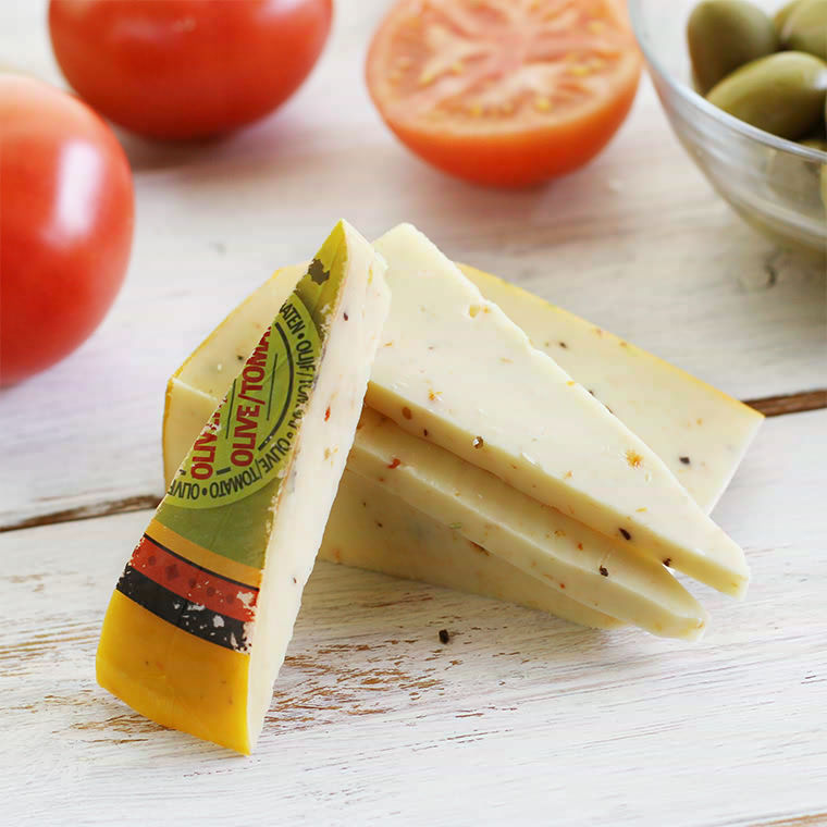 ゴーダのやさしいミルクの風味に、トマトの酸味とオリーブの塩味が絶妙に調和し、まるで地中海料理を思わせる華やかな味わいに仕上がっています。