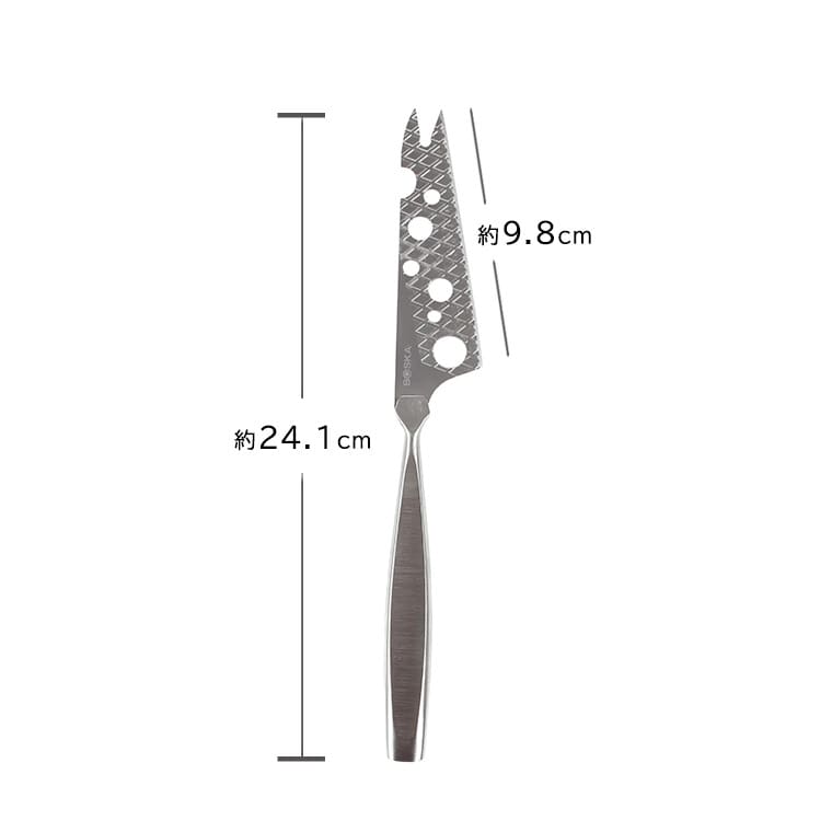 柔らかいチーズやセミハードのチーズを切るのに適した薄手のステンレス製。デザインの穴が、ねっとりとしたチーズを張り付きにくくしています。スマートで美しいカッティングにご利用ください。