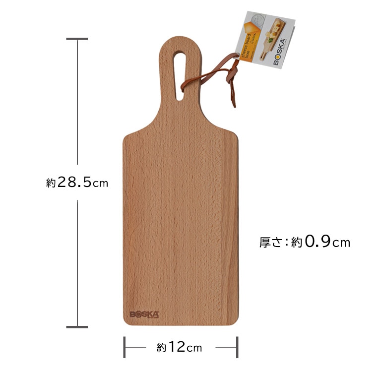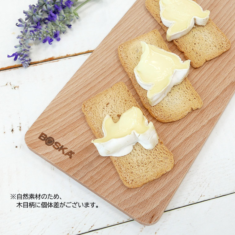素朴なブナ材の木製ボード。使い勝手の良い小さめサイズで、チーズをカットしたり、また、サーブする際にもそのまま使えてスタイリッシュに演出できます。シンプルなデザインなので、日常からホームパーティーまで、どんなシーンでも使いやすいボードです。
