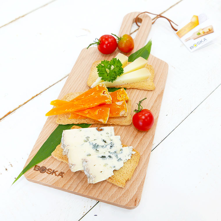 シンプルなデザインとポイントの『BOSKA』のロゴでセンスの良さが際立つ、チーズ専用のカッティングボードです。