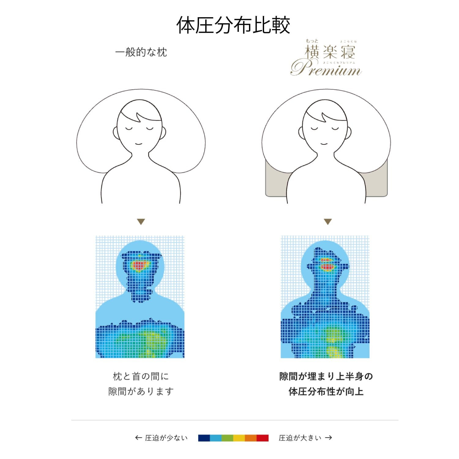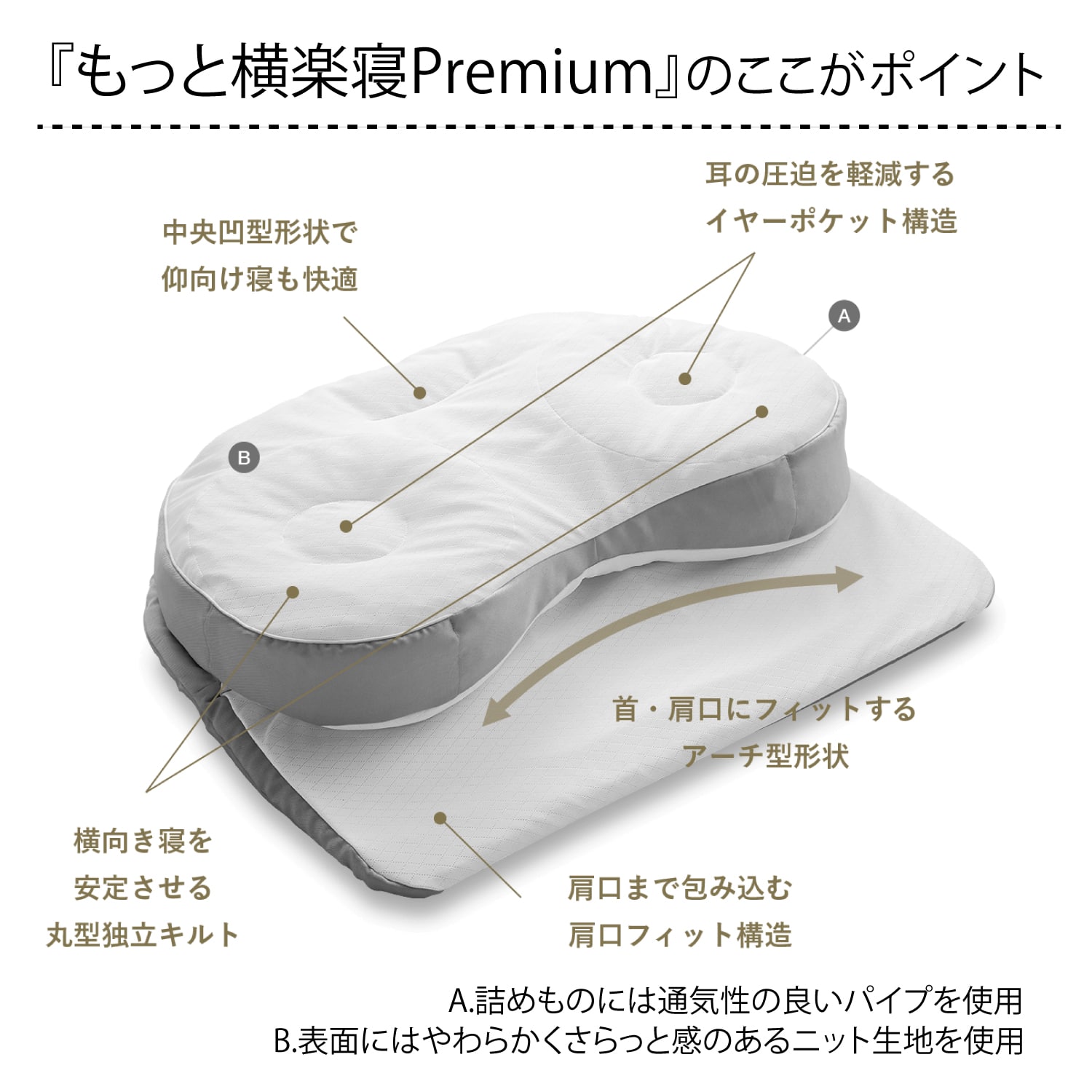 ・医師がすすめる健康枕の構造はそのままに、肩口にフィット形状をプラスしたプレミアムシリーズです。