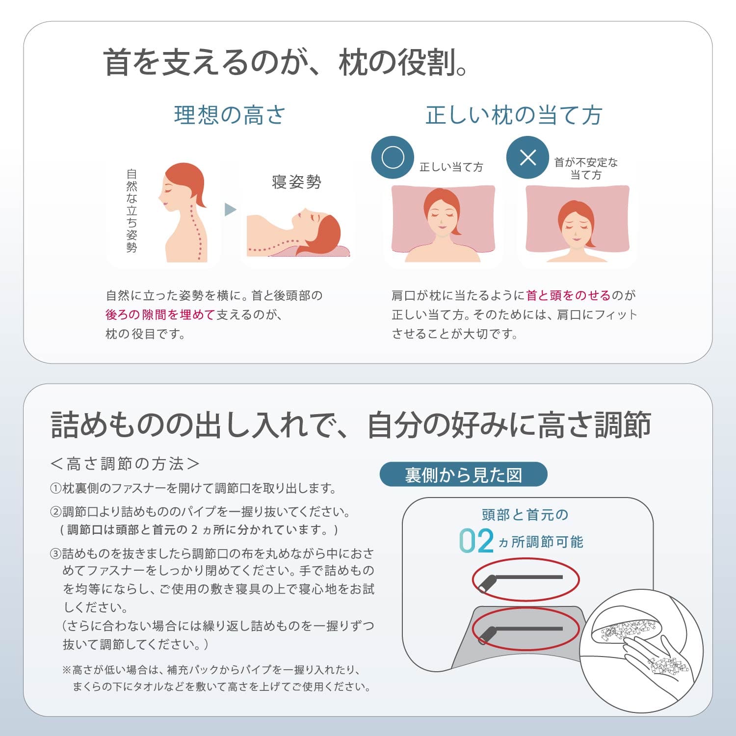枕は立体形状で首(頸部)・頭をしっかり支えます。ギフトにもおすすめ!