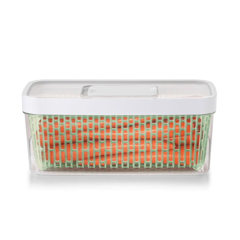 通気性を良くし、容器側面や底面の水分が食材に触れるのを妨げて腐敗を防ぐバスケット。