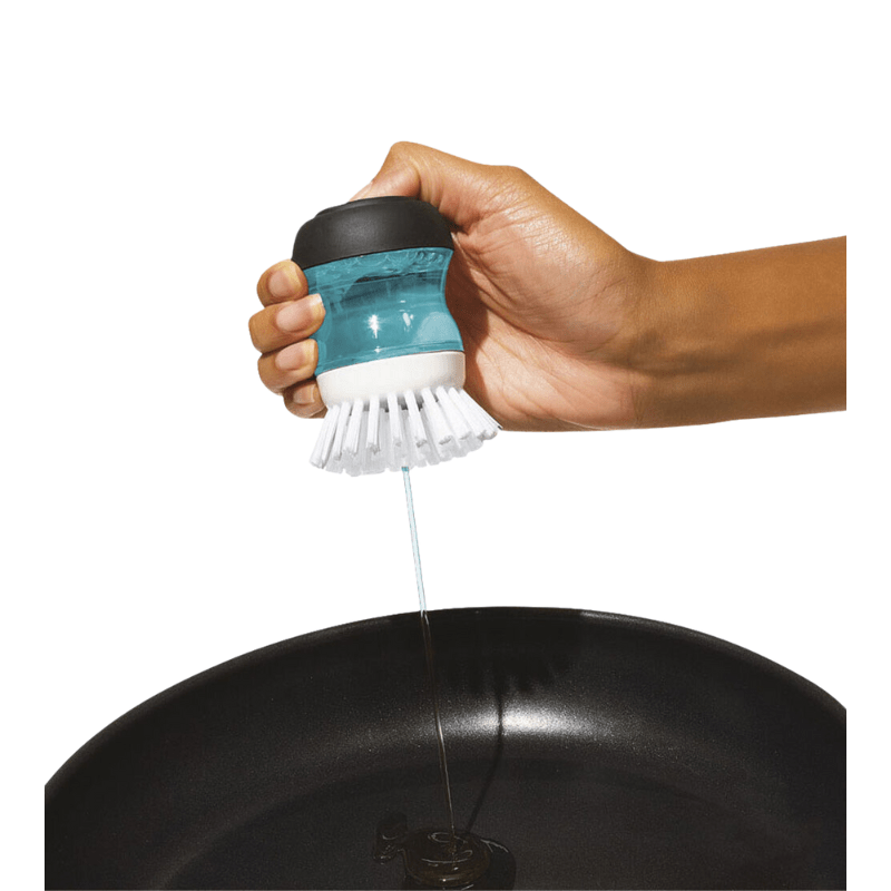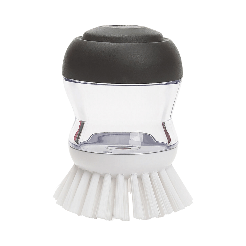 ザルや大根おろしの歯などを洗う際にも便利なのが、このワンプッシュパームブラシです。