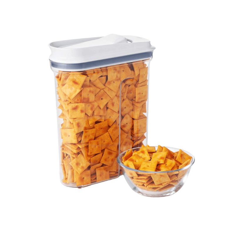 ・片手でフタを押すだけで簡単に開閉できるドライフード用の容器です。