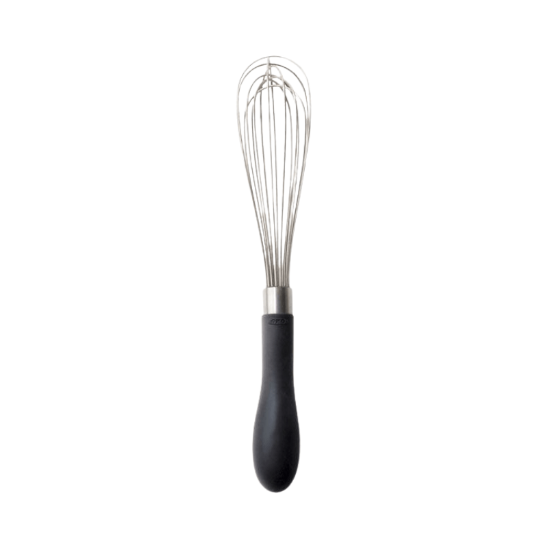 調理中の濡れた手でも滑りにくい、柔らかくて持ちやすいグリップで快適な使い心地のウィスクです。