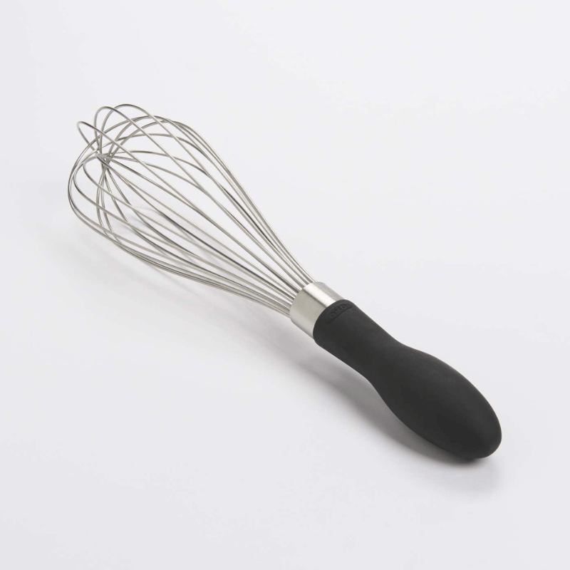 調理中の濡れた手でも滑りにくい、柔らかくて持ちやすいグリップで快適な使い心地のウィスクです。