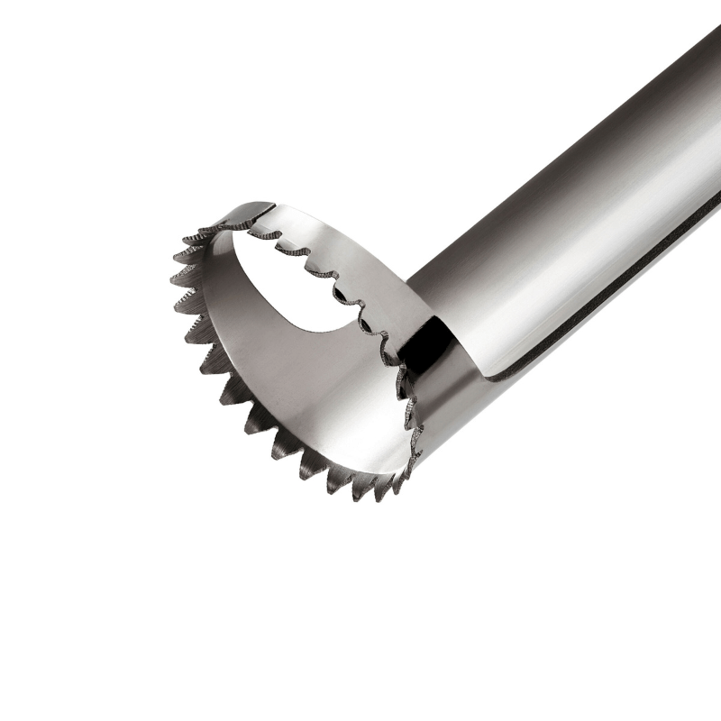 種まわりの繊維の多い部分でも簡単にカットできるギザギザの刃は、