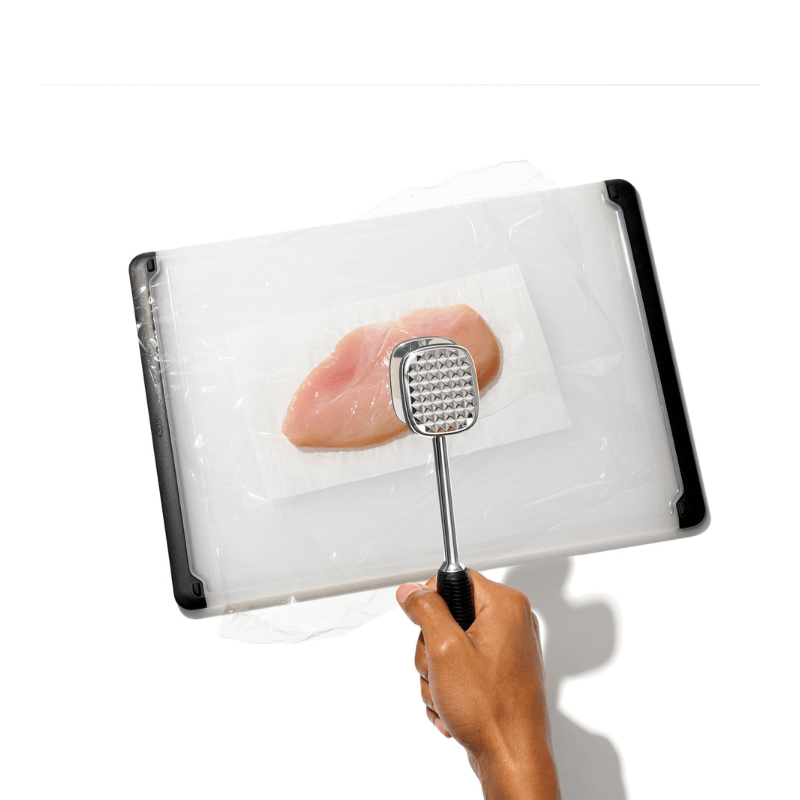 お肉をたたいて柔らかくしたり、厚みを均一にして火の通りをよくしたり、