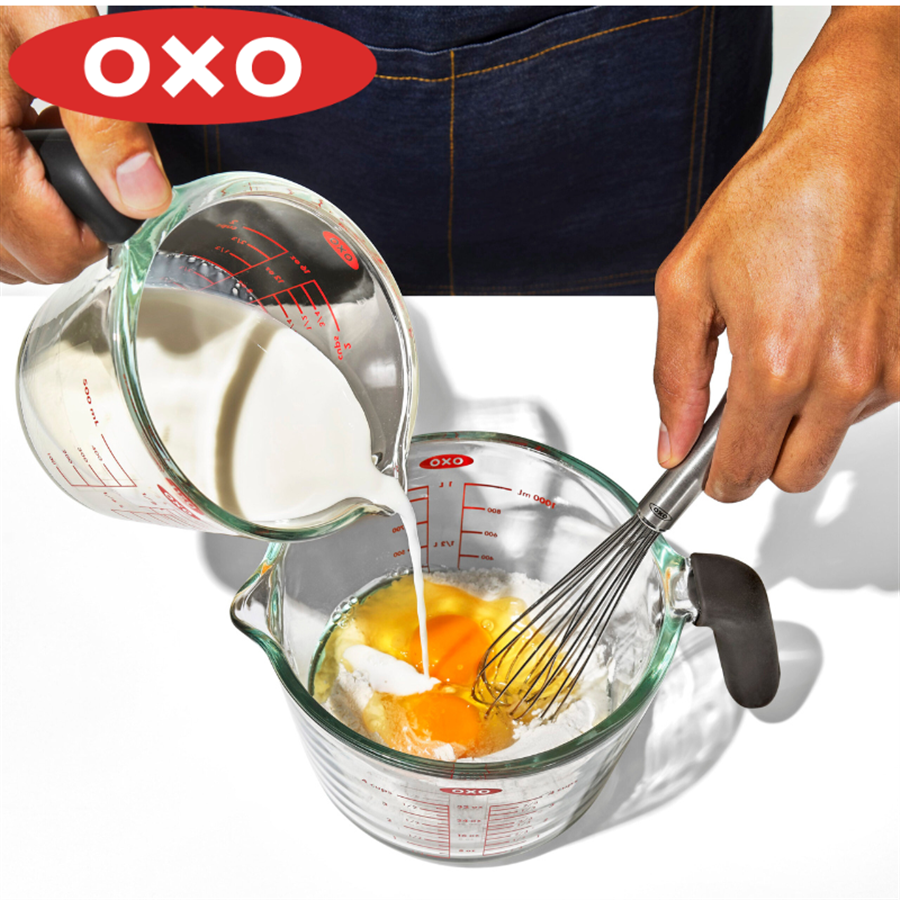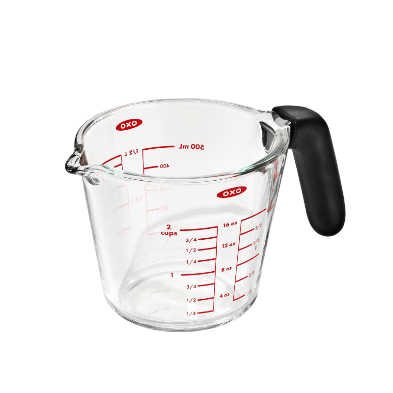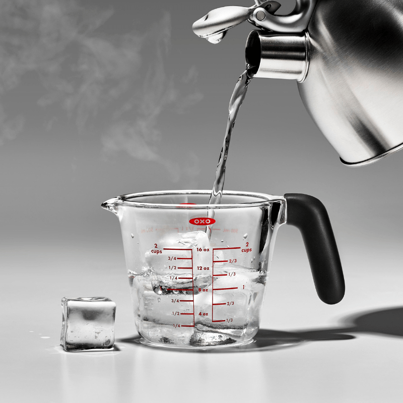 冷凍や冷蔵、電子レンジ、オーブンでもお使いいただける、丈夫なホウケイ酸ガラス製のメジャーカップです。