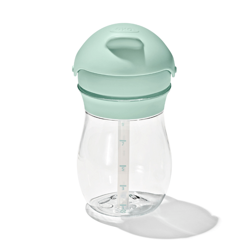 ストローで吸いながら飲むことを覚えるためのカップ。