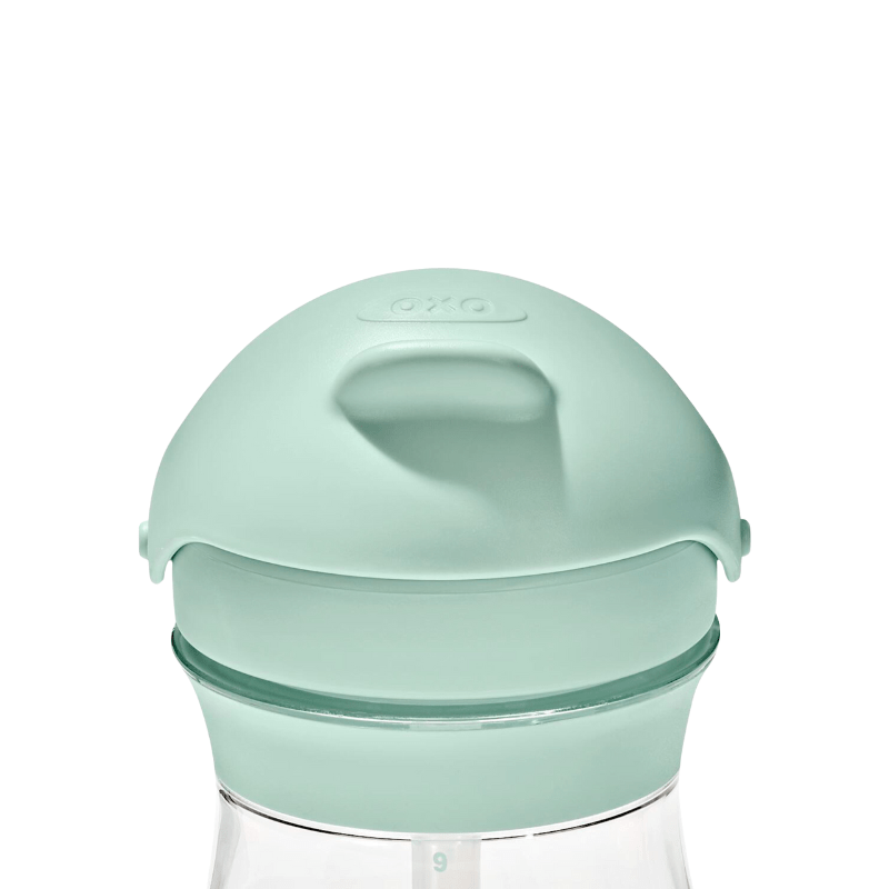 カップ本体には滑りにくいグリップ付きで持ちやすく、本体は透明なので飲んだ量も確認できて便利です。