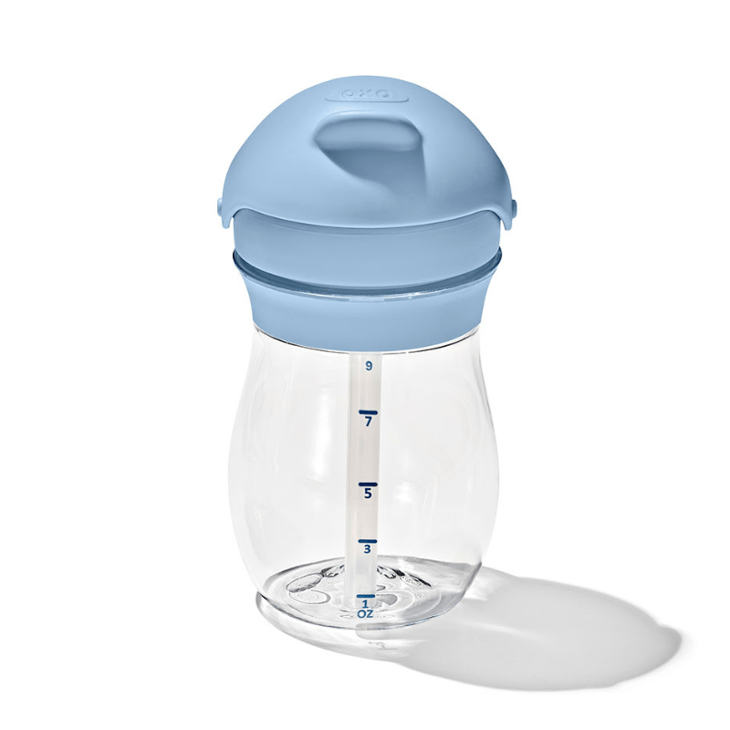 ストローで吸いながら飲むことを覚えるためのカップ。