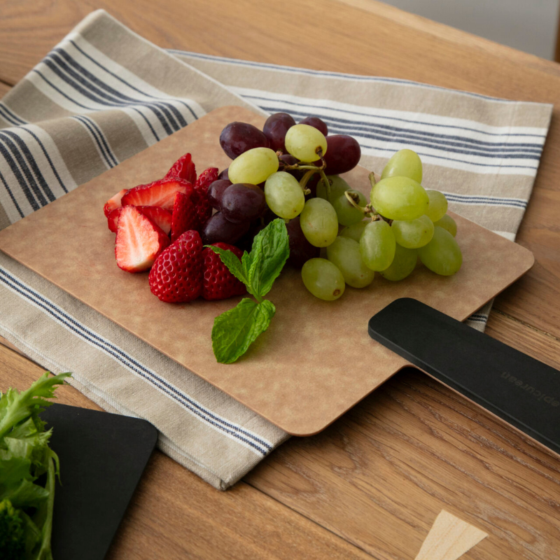 木の繊維に合成した素材を使用している耐久性に優れたカッティングボードです。