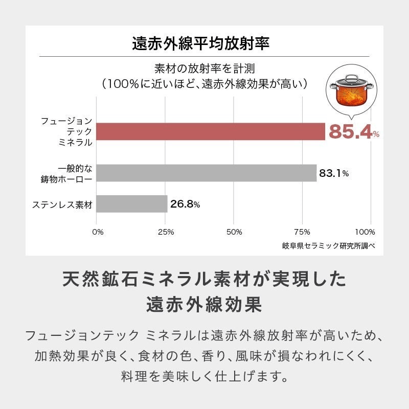 フュージョンテック ミネラルは早く熱が伝わり、蓄熱性も高いので食材の旨みを逃しません。